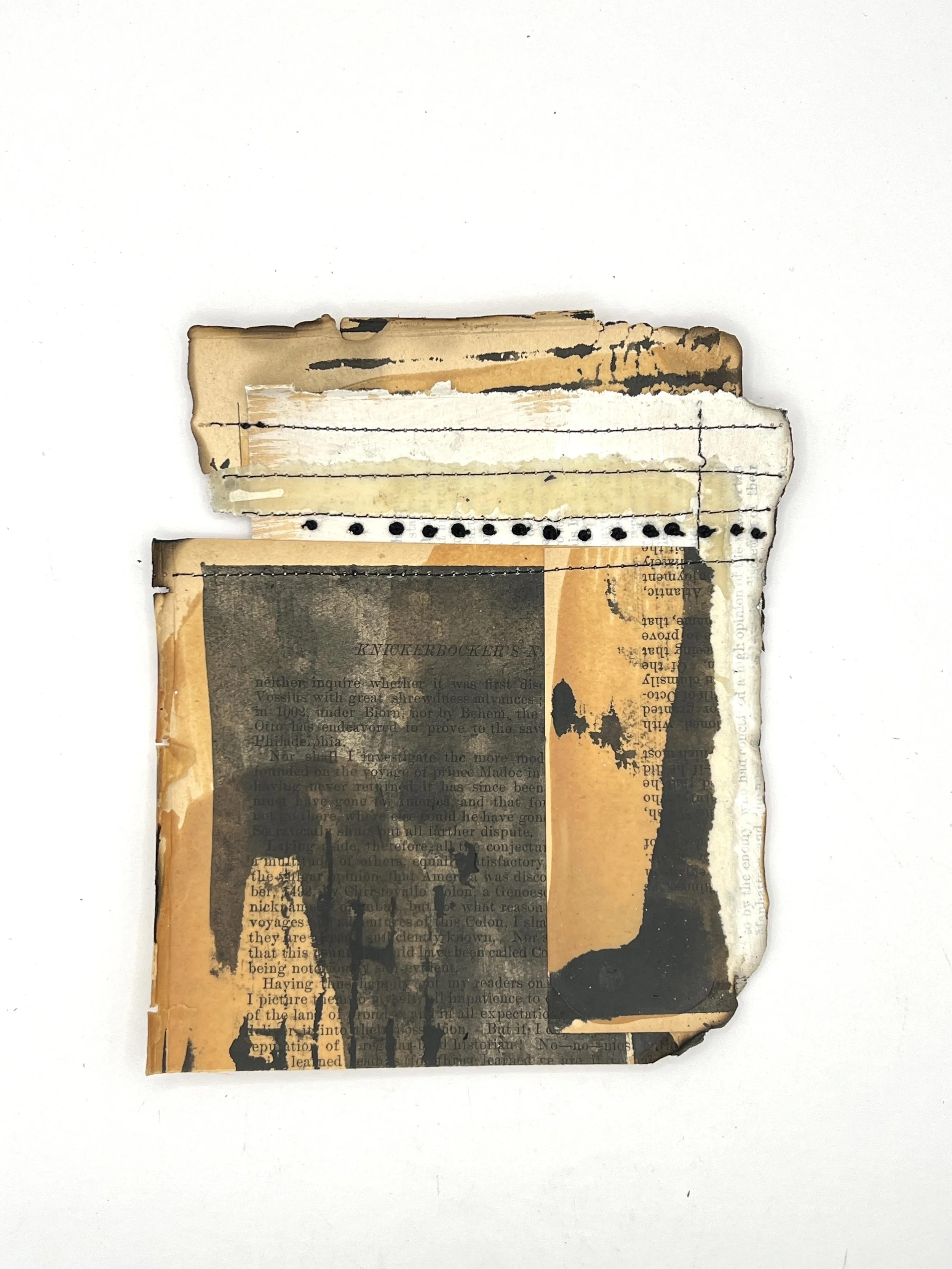 This past month I’ve been captured by the Knickerbocker series. I call them that because I use pages from an old book The Knickerbocker History of New York. The pages are fragile, a gorgeous color, and remind me of my days in New York. A librarian commented on Instagram that some books survive in fragments which helped to ease my twinges about tearing up a book.